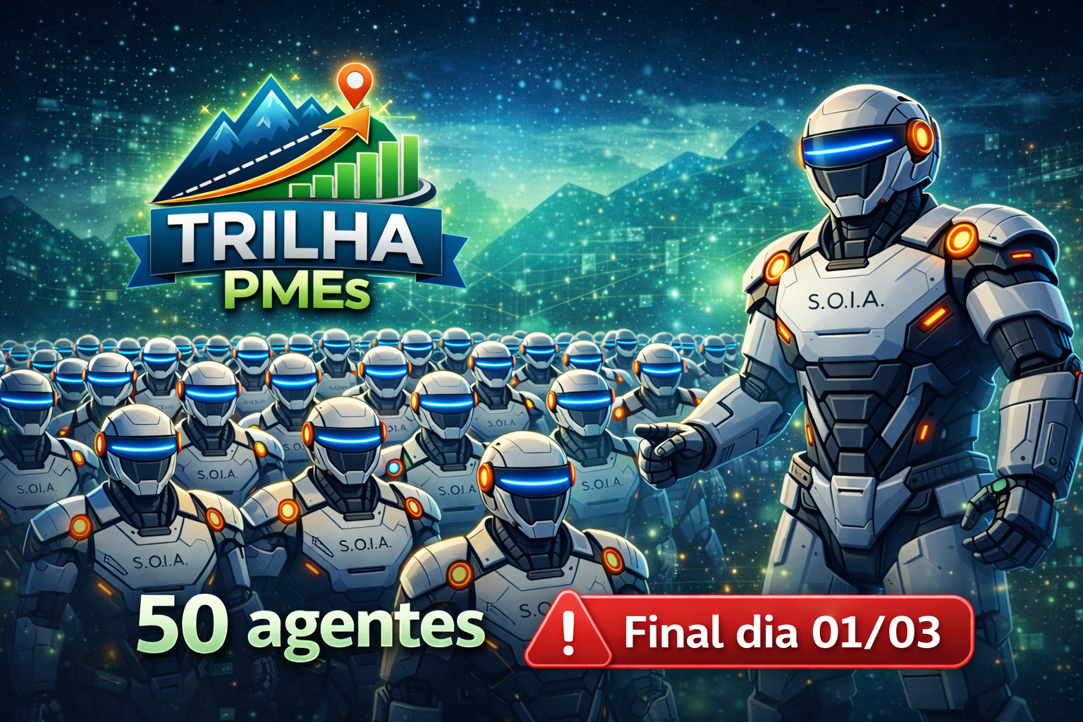 É uma trilha prática (12 etapas) com +50 agentes organizados por áreas da PME, para você parar de improvisar e executar um caminho claro: atrair → converter → vender → reter, com time enxuto.