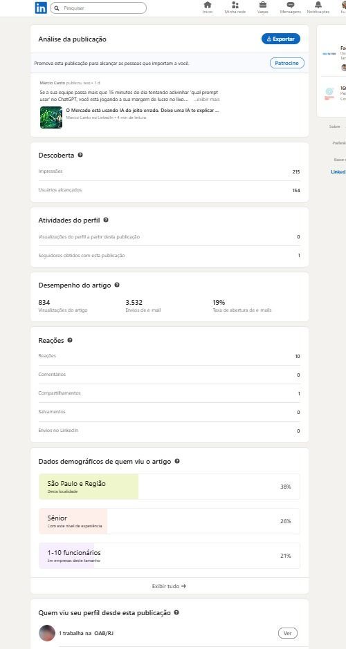 Nosso manifesto sobre "O mercado estar usando IA do jeito errado" gerou números irrefutáveis em nossas análises de distribuição profissional no LinkedIn: