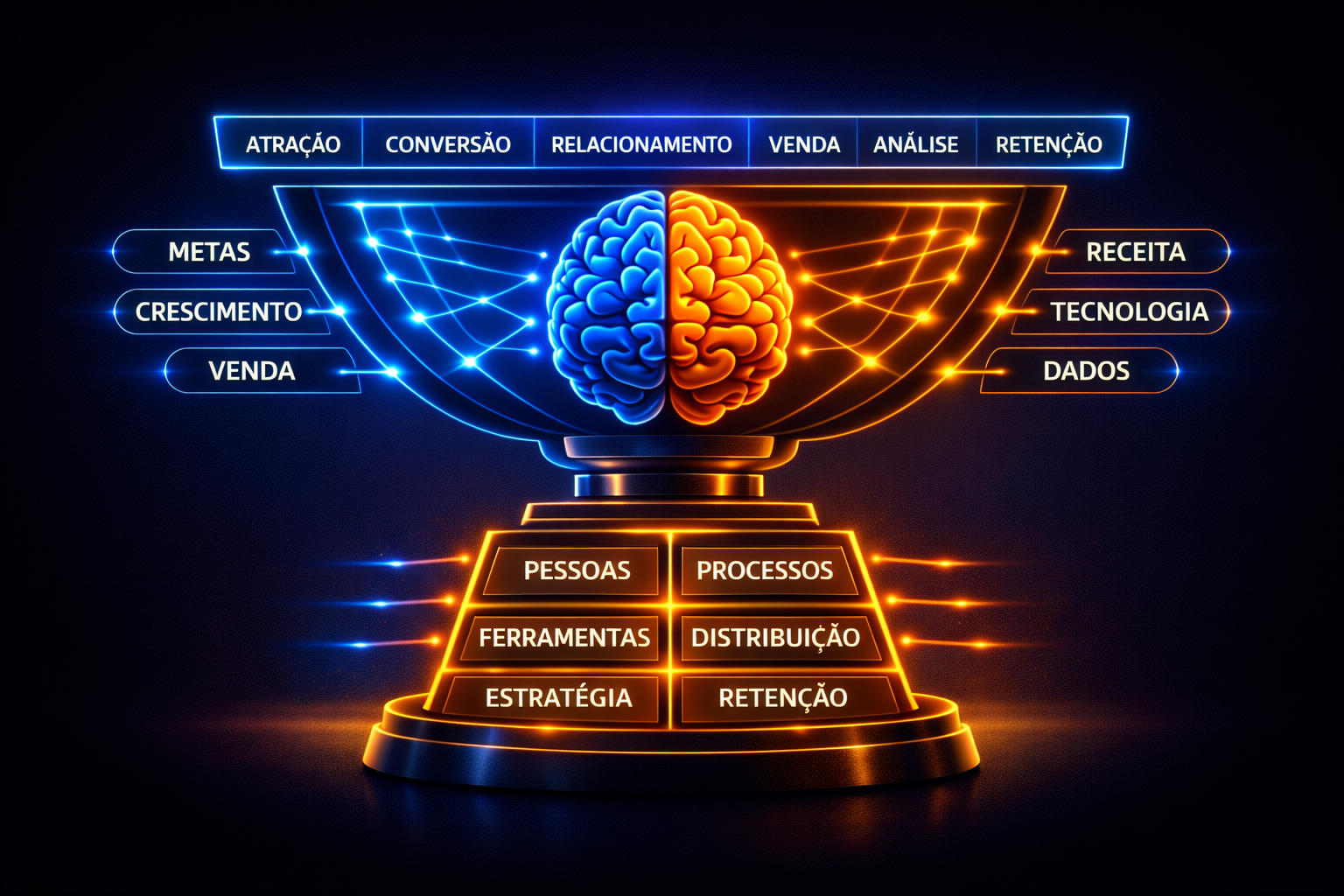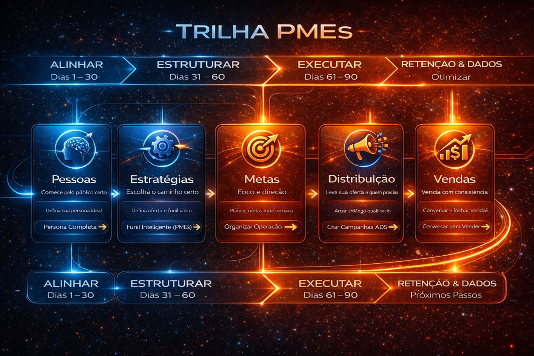 Ele é um sistema que organiza decisões e execução em marketing, vendas e retenção.